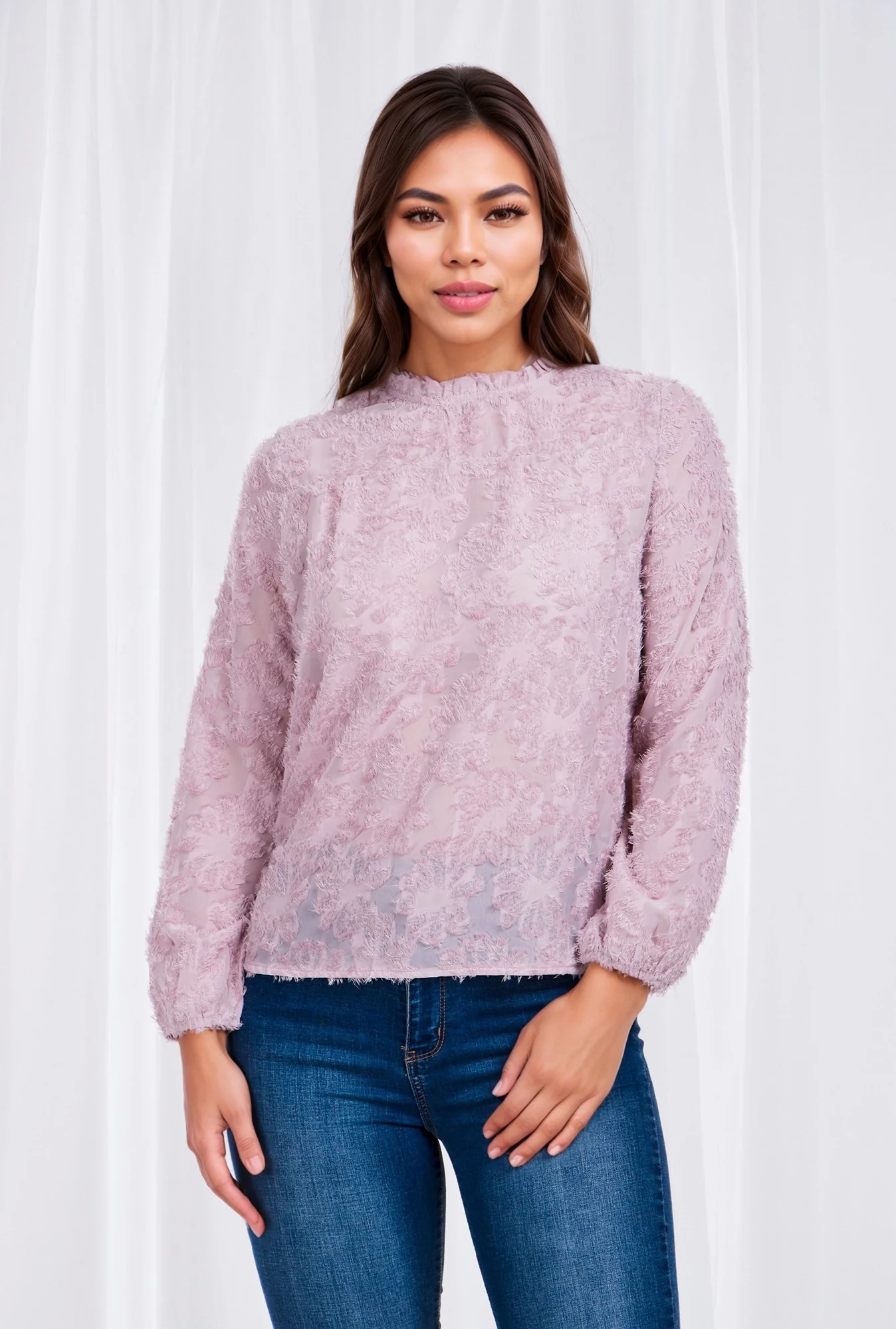 - Round frill neckline