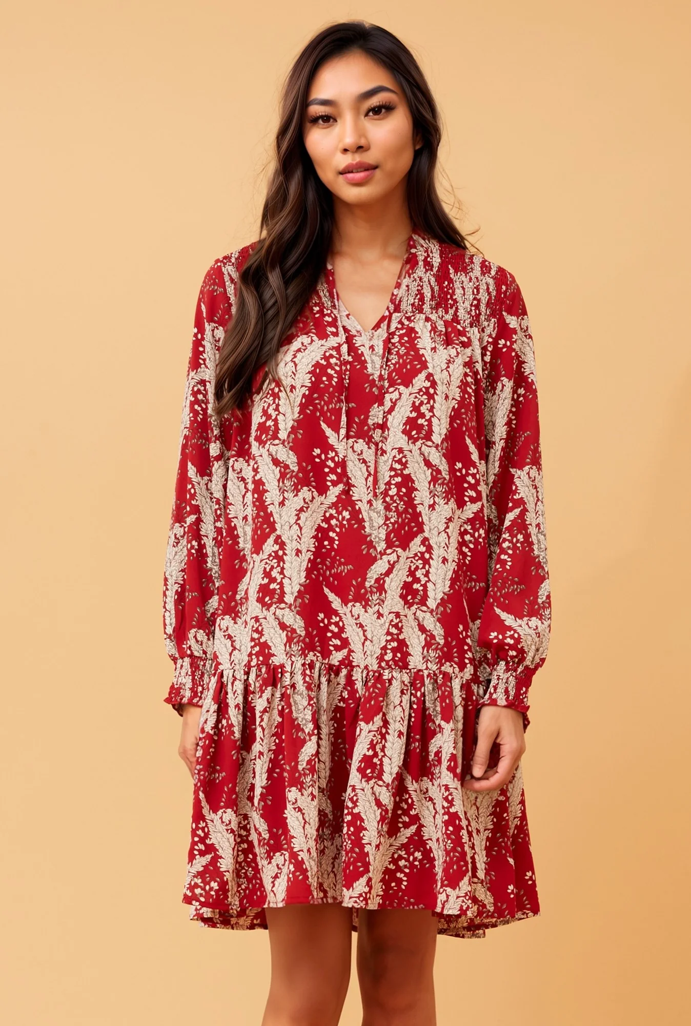 Sophisticated, chic, stunning. These are the first things that come to our mind when we see the Delaney leaf print dress! This dress immediately dresses up your look no matter the occasion. The long elasticated poet sleeves complements the floaty top layer with a tier. We can see this dress being worn on a dinner date!