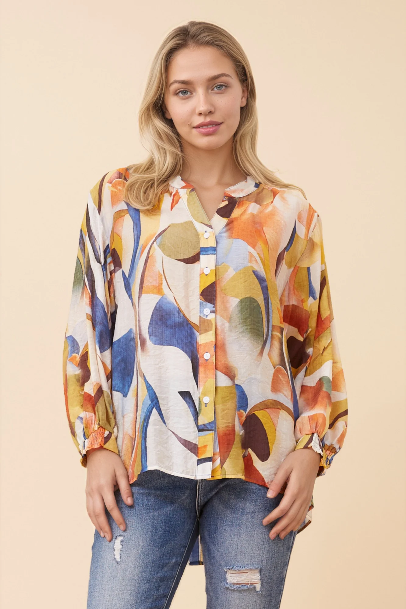 LELINA ABSTRACT PRINT BLOUSE