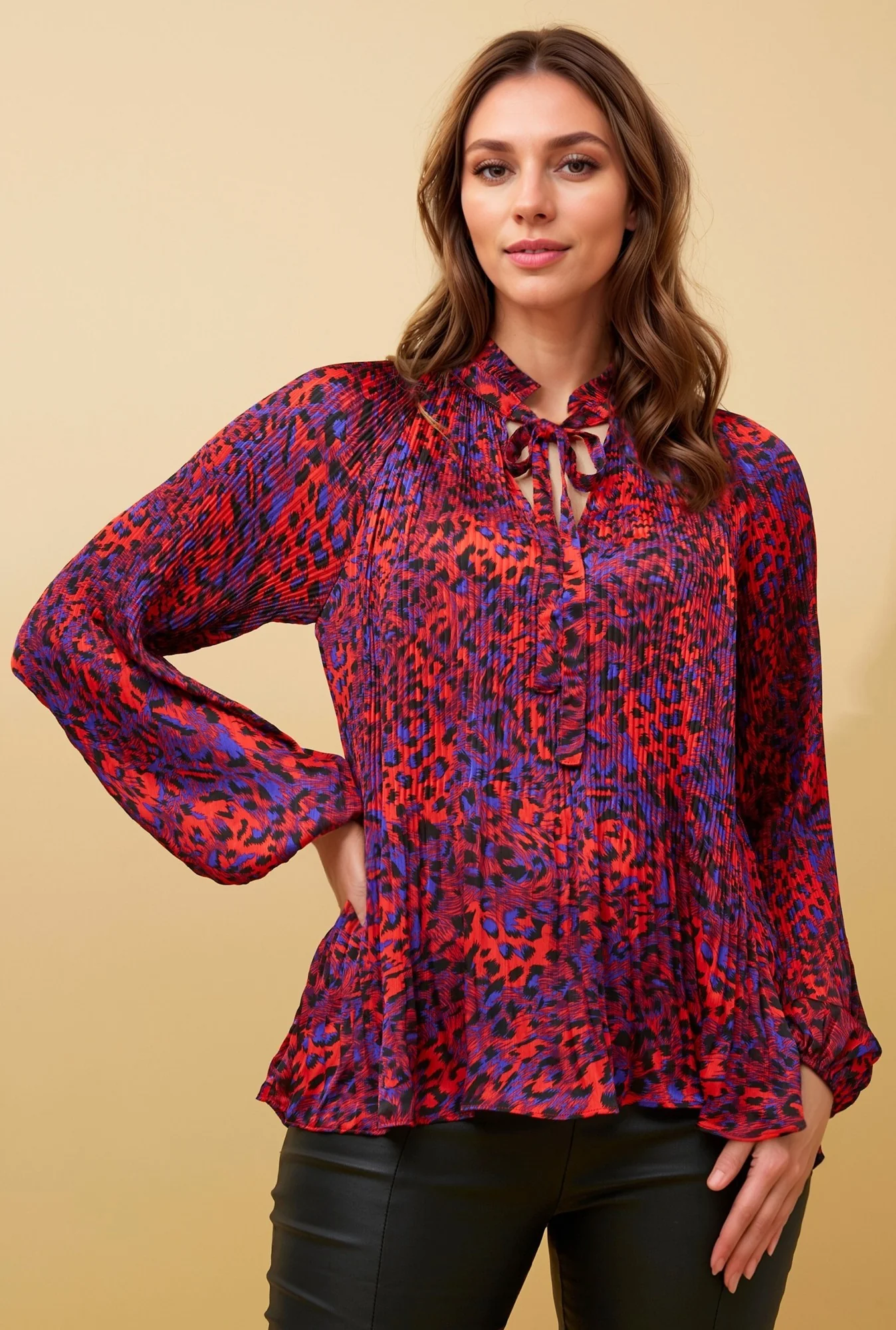 PETA ANIMAL PRINT PLEATED BLOUSE