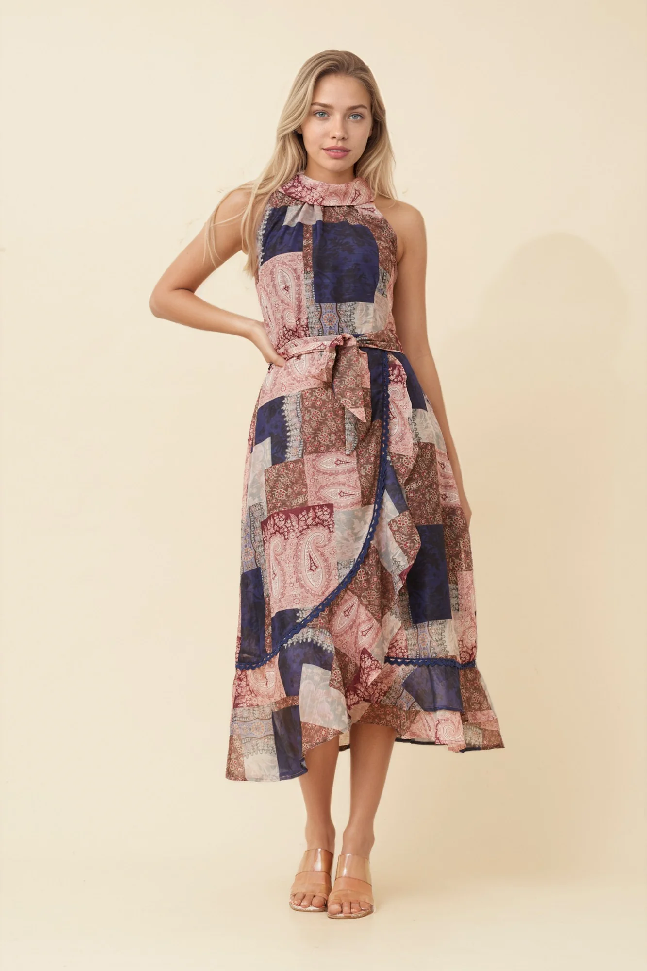 RIO PATCHWORK PRINT MIDI DRESS