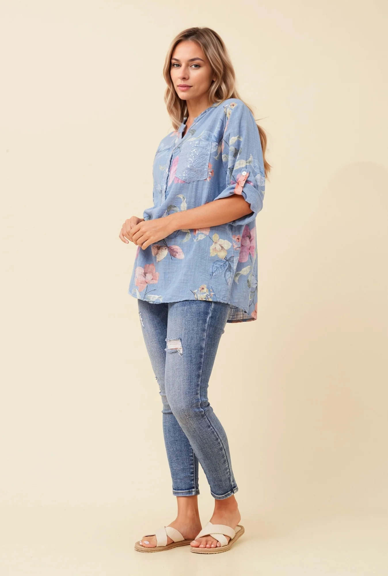 - 3/4 roll-up sleeve with button detail