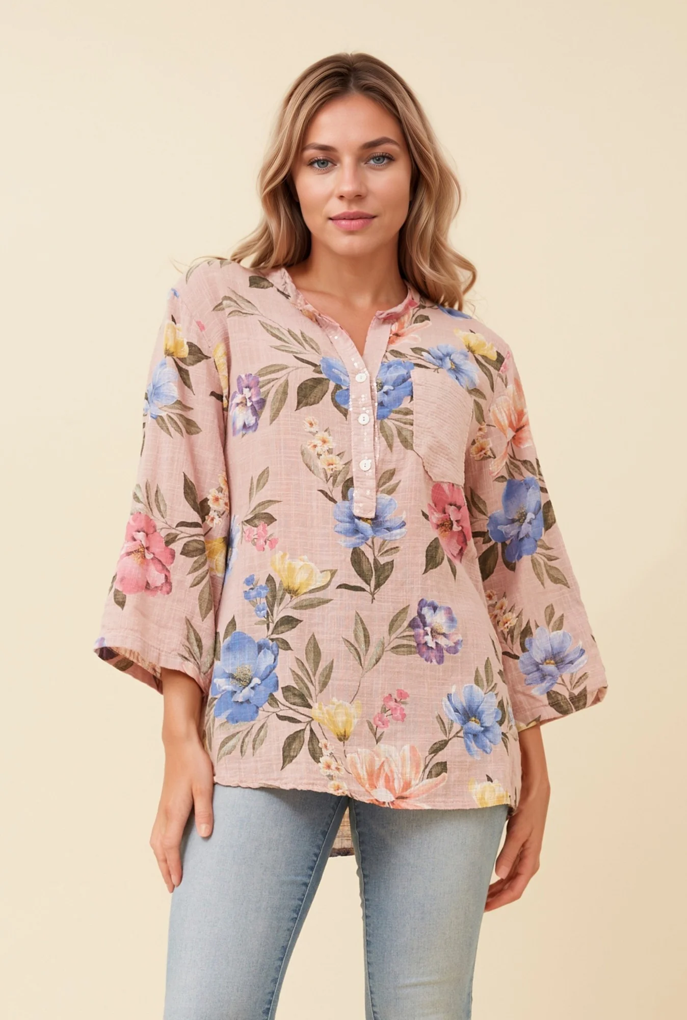 - 3/4 roll-up sleeve with button detail