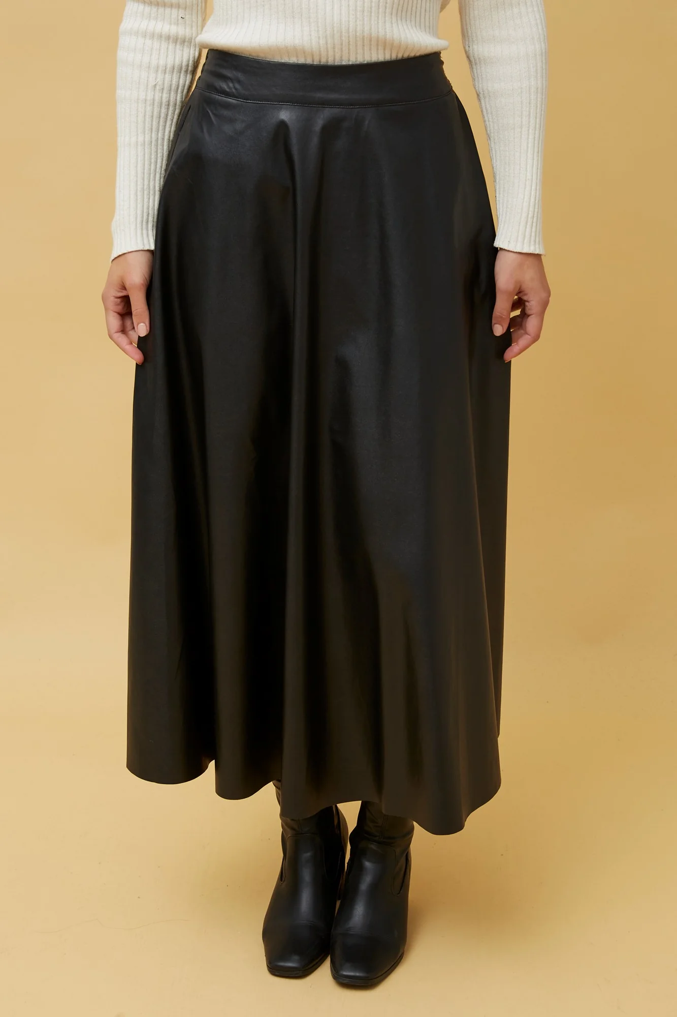ROXANNE VEGAN LEATHER MIDI SKIRT